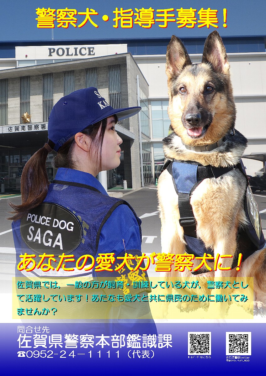 佐賀県警察では、警察嘱託犬・指導手を募集しています。
