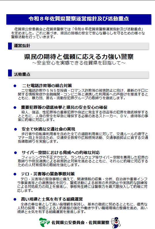令和8年佐賀県警察運営指針及び活動重点