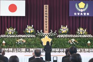 令和7年佐賀県殉職察官慰霊祭に出席し、委員長が「皆様の、その強い御覚悟を決して忘れることなく、未来へと受け継いでいくとともに、佐賀県警察が、佐賀県の治安のための、その使命を全うし続けることができるよう、その務めを果たしてまいります。」旨の慰霊のことばを述べるとともに、献花を行った。 | |