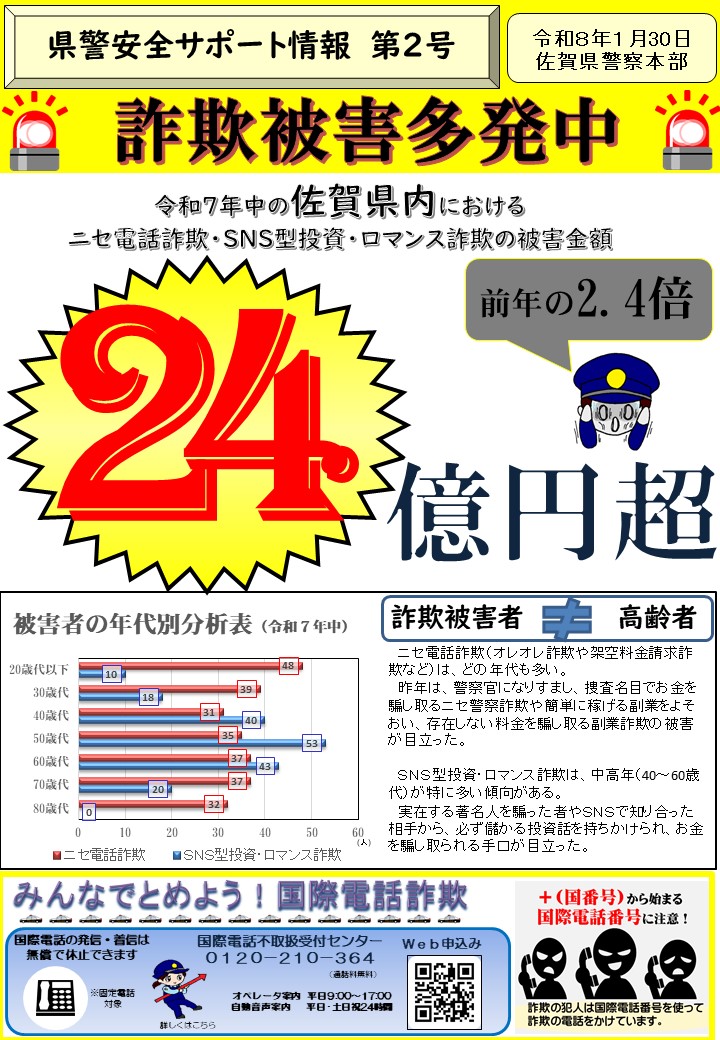 令和7年中ニセ電話詐欺等24億円超えの被害!(サポート情報第2号)