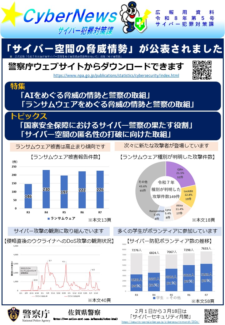 サイバーニュース【令和8年第5号】「サイバー空間の脅威情勢」が公表されました