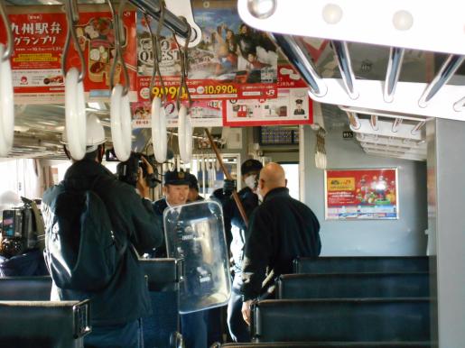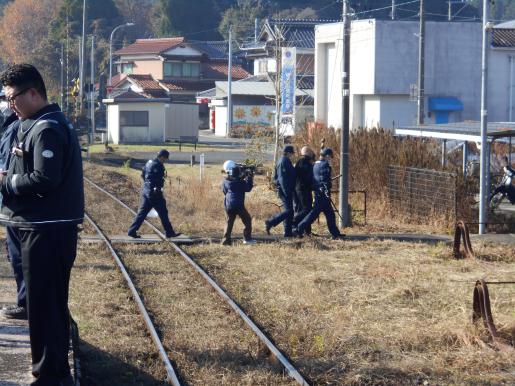 JR九州佐賀鉄道事業部と合同で、列車内での不審者対応訓練及び線路内に人が立ち入ったことを想定した対処訓練を行い、現場臨場した警察官とJR職員との連携を確認しました。