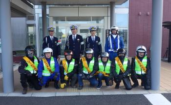 冬の交通安全県民運動に合わせて、ライダーの皆さんと一緒に交通安全パレードを行い、ドライバーの方々に安全運転を呼び掛けました。