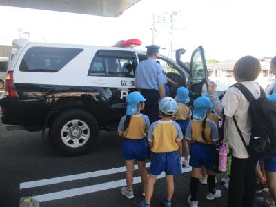 白石町のふくたこども園の年長児さんがパトカーの見学に来てくれました。