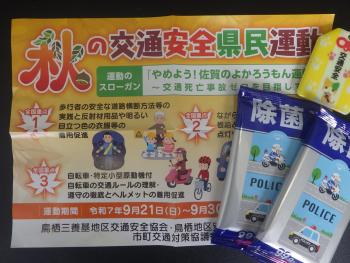 「秋の交通安全県民運動」が始まっています。ドライバーの方は、心にゆとりを持った運転をお願いします。