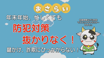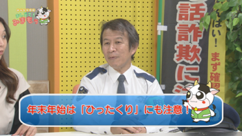 ケーブルテレビはっぴとすビジョンの番組「みんなで防犯おしえて!みまもぅ」に出演して、年末年始における犯罪被害防止を呼びかけました。